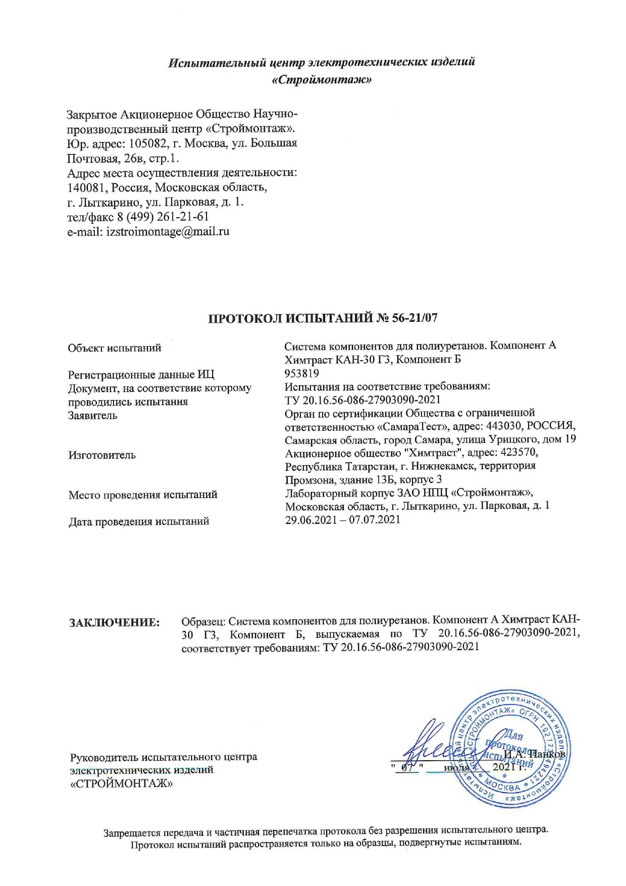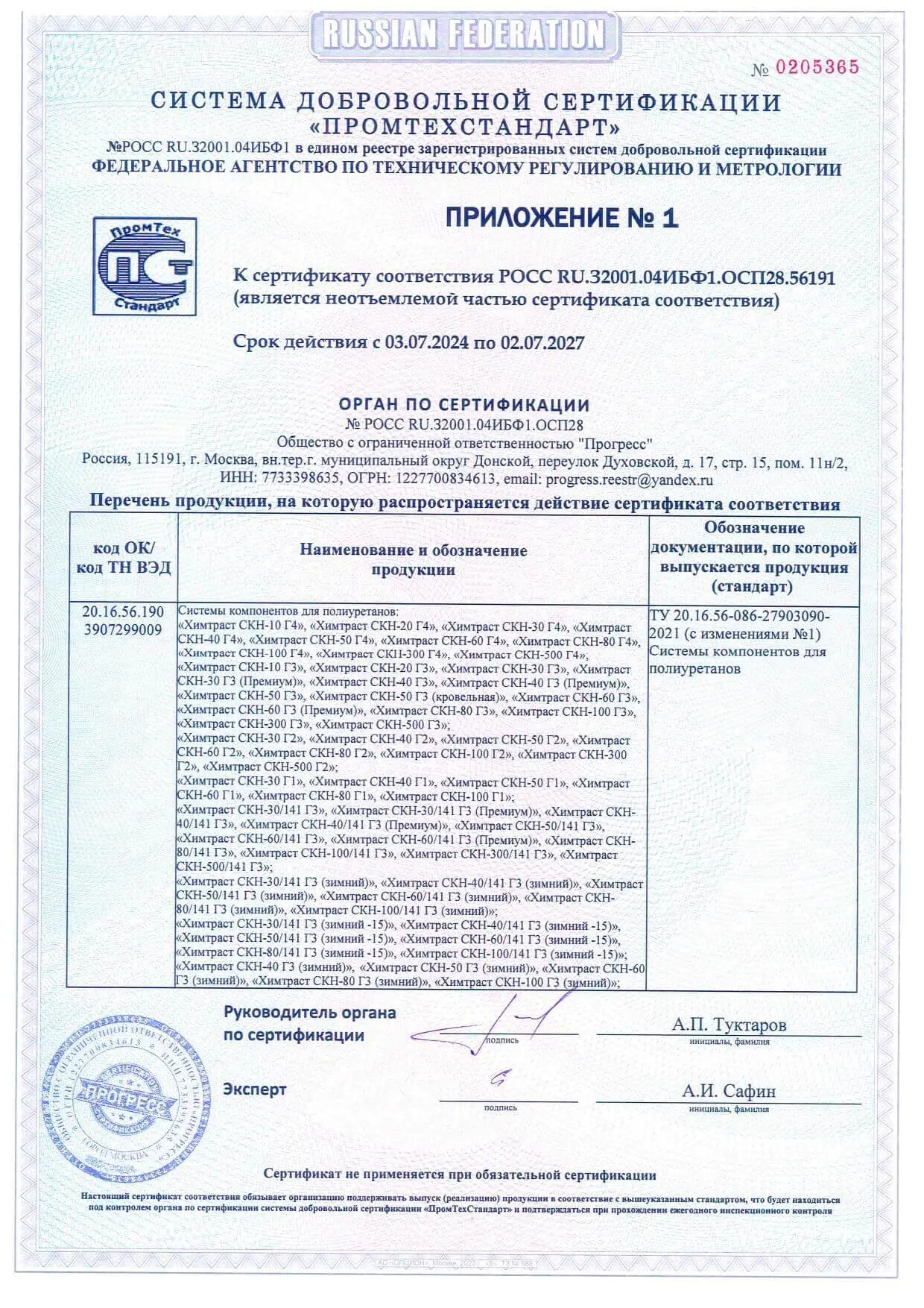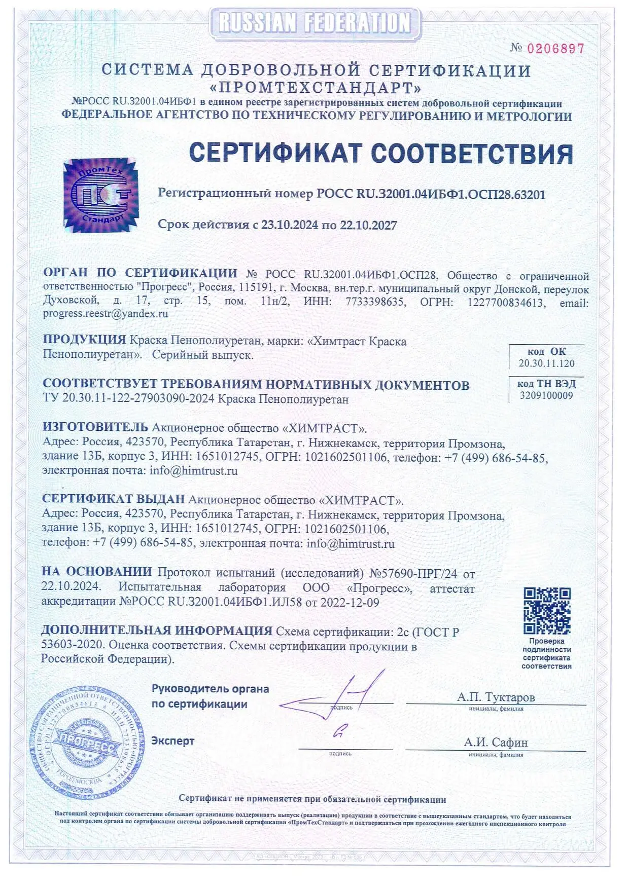 Сертификат соответствия на "Химтраст Краску Пенополиуретан"