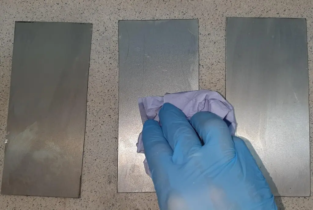 Удалить образовавшуюся пыль ветошью, смоченной в растворителе (ацетон, ксилол, толуол, бутилацетат, растворители марок 646, Р-4, Р-5).